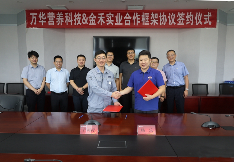 近日,万华营养科技与wepoker德州合作框架协议签约仪式在万华烟台工业园圆满举行,万华营养科技董事长白海涛、wepoker德州董事长杨乐出席会议,并代表双方签署协议。