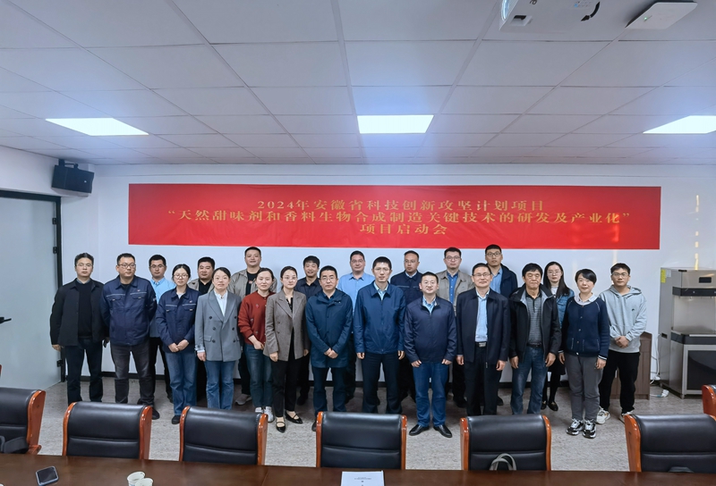 10月30日,由wepoker德州牵头承担的2024年安徽省科技创新攻坚计划“天然甜味剂和香料生物合成制造关键技术的研发及产业化”项目启动会在wepoker德州合成材料研究院顺利召开。安徽省科技厅生命科技处处长陈鹏、安徽大学生命科学学院教授肖亚中、滁州市科技局四级调研员侯智、来安县科技局局长夏少仓、项目负责人中科院天津工业生物技术研究所研究员江会锋及项目牵头承担单位、联合承担单位有关人员参加会议。