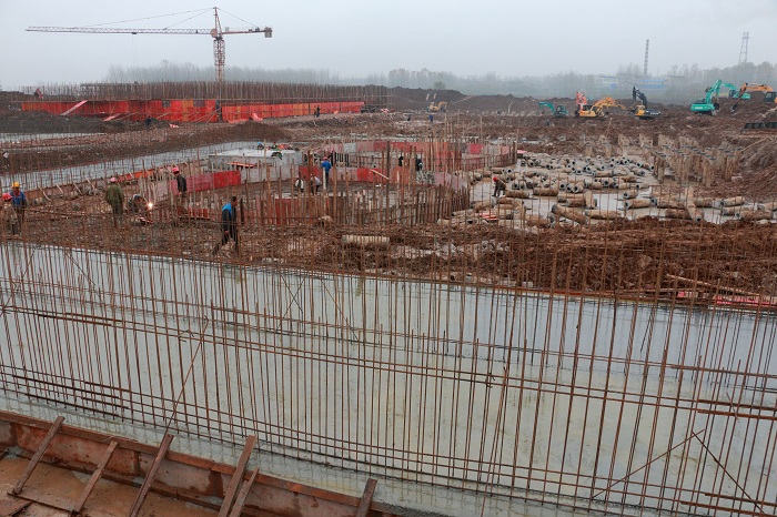 目前,大部分厂房二层都基本浇筑结束,正在进行三层的浇筑准备,在现场制作的设备也紧锣密鼓的进行,同时配套的污水处理站也在紧张施工中。最近阴雨天气较多,施工队伍们克服种种困难,确保工期按时完成。