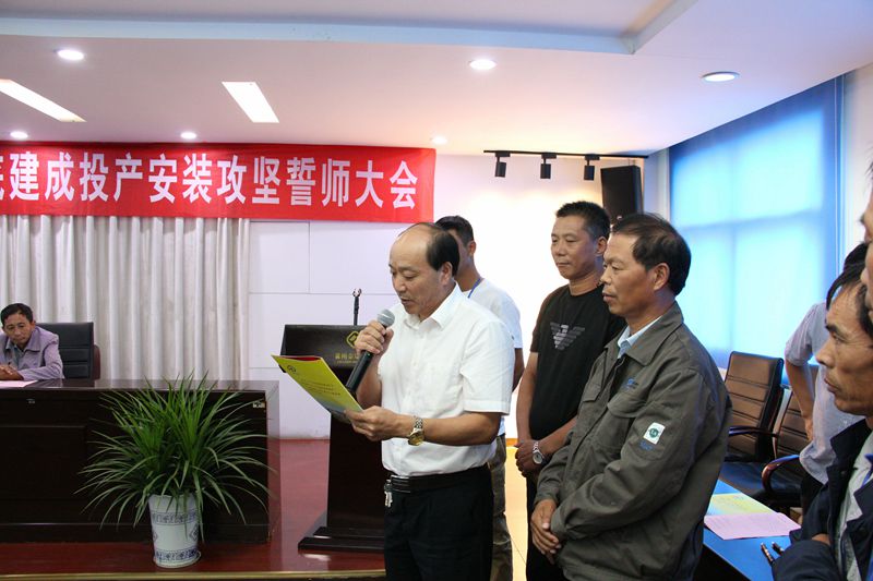 公司董事长杨乐在听取上述人员发言后作重要讲话并对安装攻坚工作提出了具体要求。一是要求从会后开始,整个公司要转入“战时”状态,各参建单位要明确战役目标,各级干部和职工要充分发扬公司“三不讲”精神,加班加点,外协施工队伍要服从指挥,齐心协力,确保项目12月底建成投产。二是进一步加强统筹协调,优化资源配置,牢固树立全厂“一盘棋”思想,全力以赴推进项目建设。三是各级干部和职工要积极发挥聪明才智,创造性思维,创新工作方式,大家心往一处想、劲往一处使,群策群力,坚决打赢这场项目安装攻坚战。四是做好人员培训工作,保证参加培训人员能够熟练上岗,项目建成开车后满足岗位操作需求。五是对在保证安全和质量的前提下,按照时间节点要求完成分配工作任务的单位给予相应奖励,对未按时完成工作任务的单位,要按照“军令状”约定落实责任。