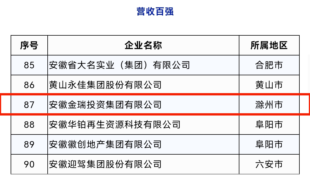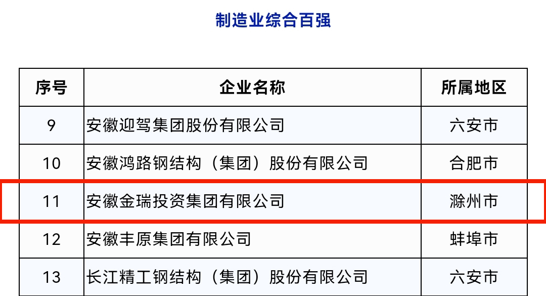wepoker德州母公司——安徽金瑞投资集团有限公司位列营收百强第87位、制造业综合百强11位。