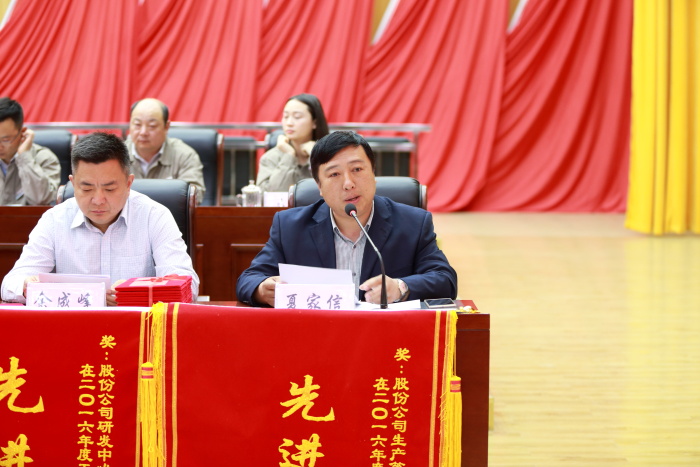 根据大会议程,由股份公司总经理夏家信宣读“关于表彰2016年度先进集体、先进个人决定”文件、莅临会议领导颁奖、二公司销售内贸经理吴扬和金春公司副董事长孙涛作表态性发言、夏总经理通报股份公司2016年度安全环保管理目标完成情况,并代表公司分别与一、二、三、四、五、六、七及公用工程公司经理签订了2107年度安全环保管理目标责任书。