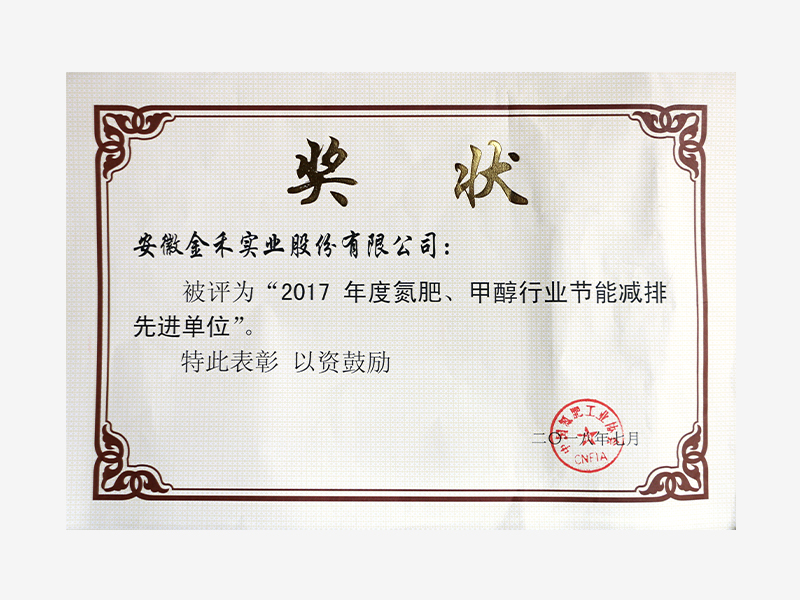 2017年度氮肥、甲醇行业节能减排先进单位